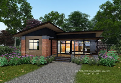 สำหรับบ้านสไตล์โมเดิร์นรูปทรงตัวแอลหลังนี้ประกอบไปด้วย 3 ห้องนอน 2 ห้องน้ำ พร้อมระเบียงหน้าบ้าน